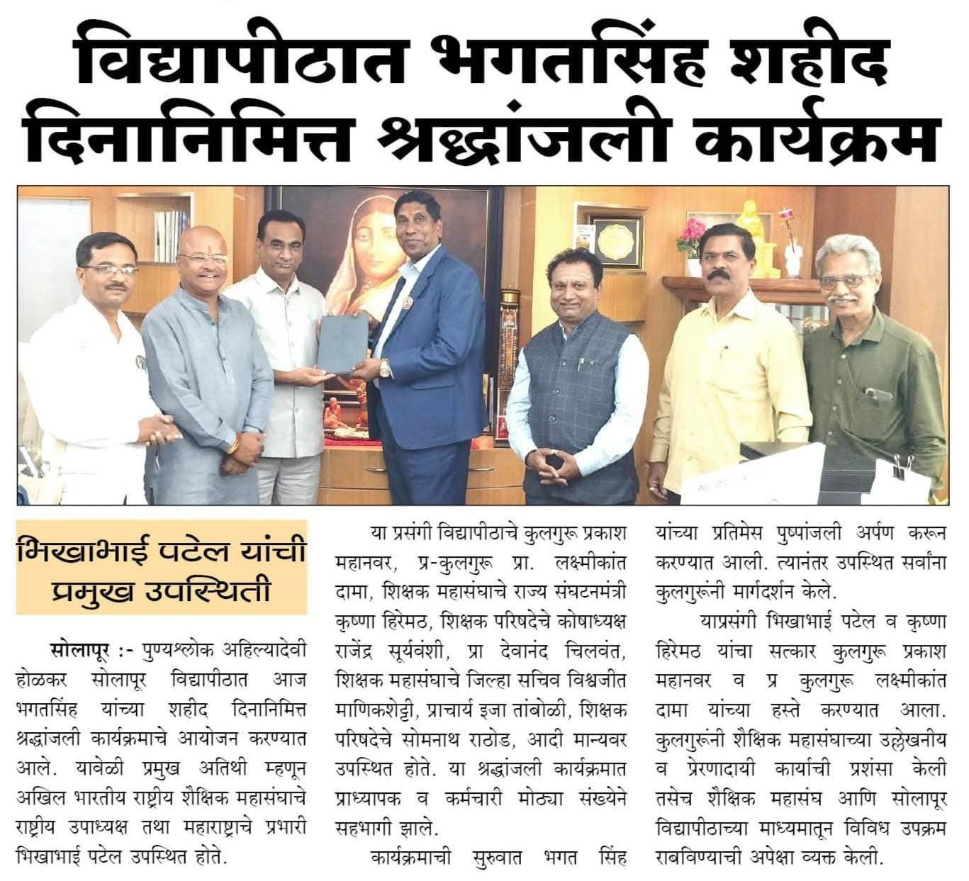 Read Moreविद्यापीठात भगतसिंह शहीद दिनानिमित्त श्रद्धांजली कार्यक्रम भिखाभाई पटेल यांची प्रमुख...