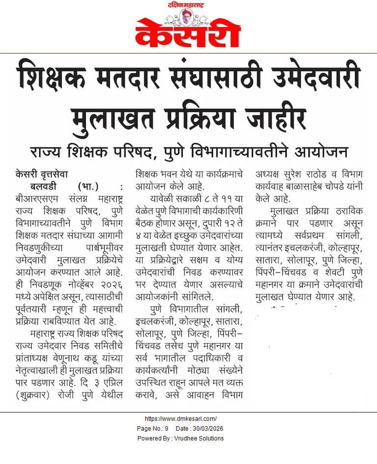 Read Moreशिक्षक मतदार संघासाठी उमेदवारी मुलाखत प्रक्रिया जाहीर राज्य शिक्षक परिषद,...