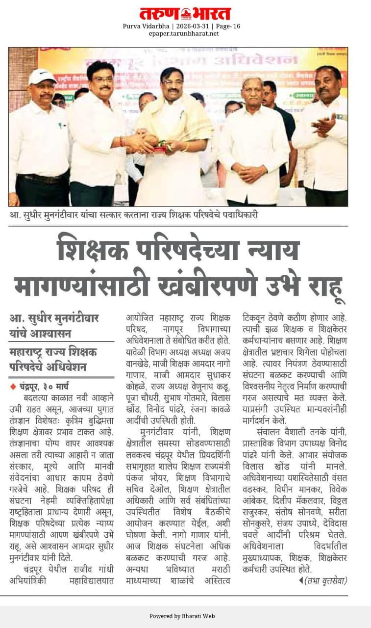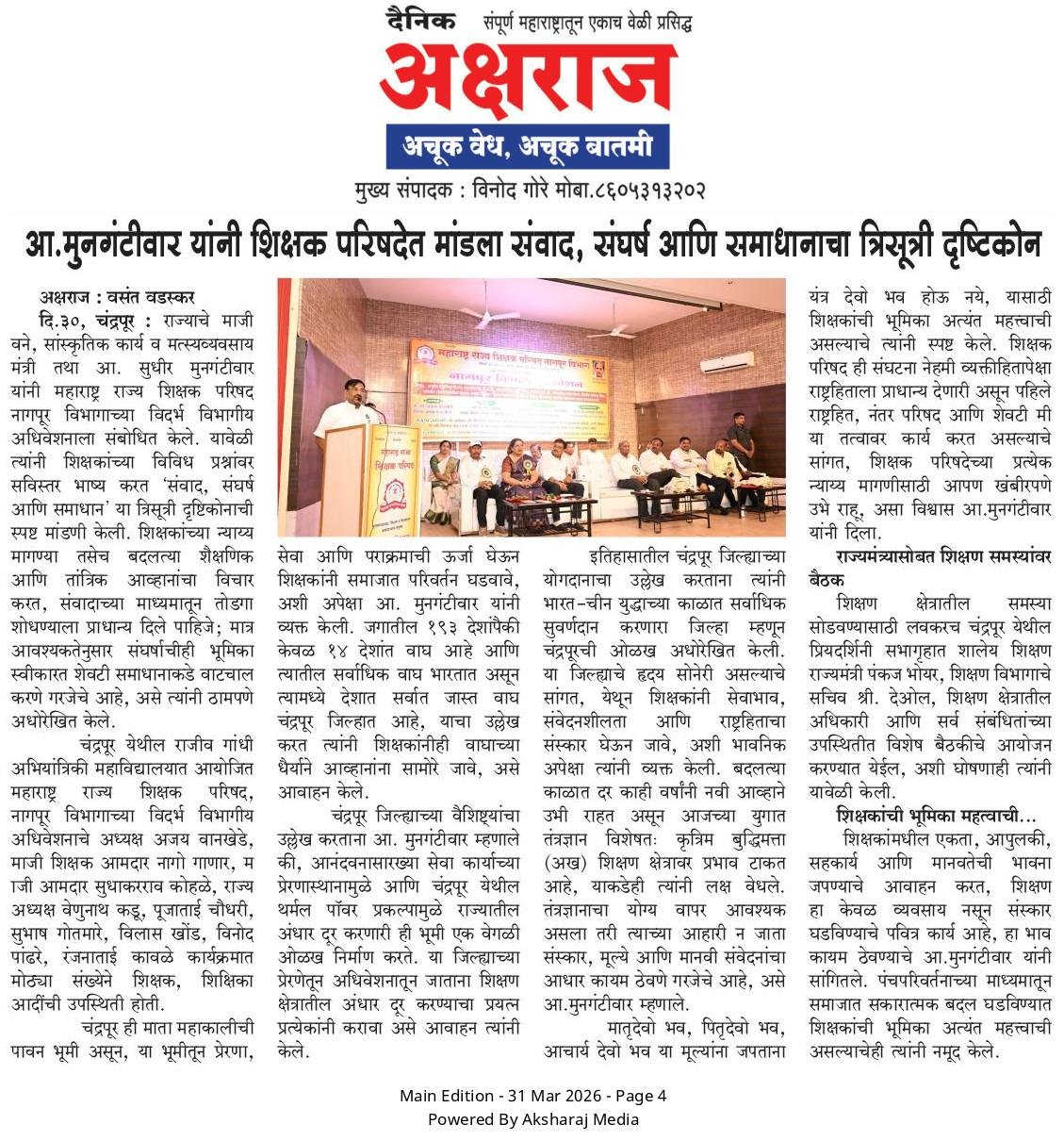 आ. मुनगंटीवार यांनी शिक्षक परिषदेत मांडला संवाद, संघर्ष आणि समाधानाचा...