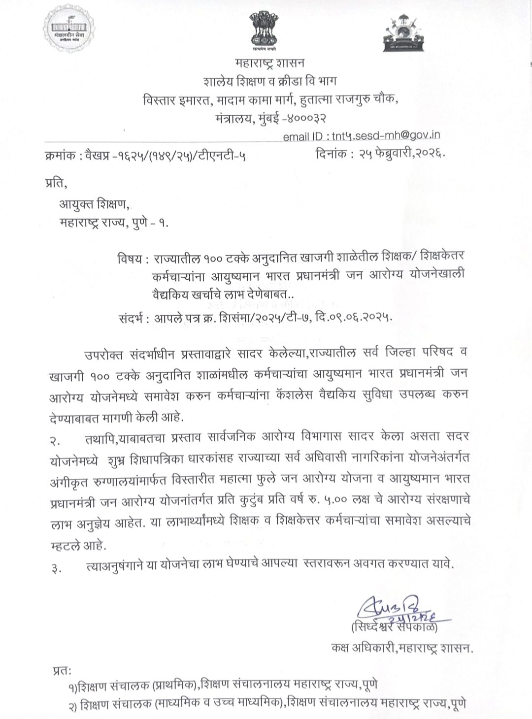 कर्मचाऱ्यांना आयुष्यमान भारत प्रधानमंत्री जन आरोग्य योजनेखाली