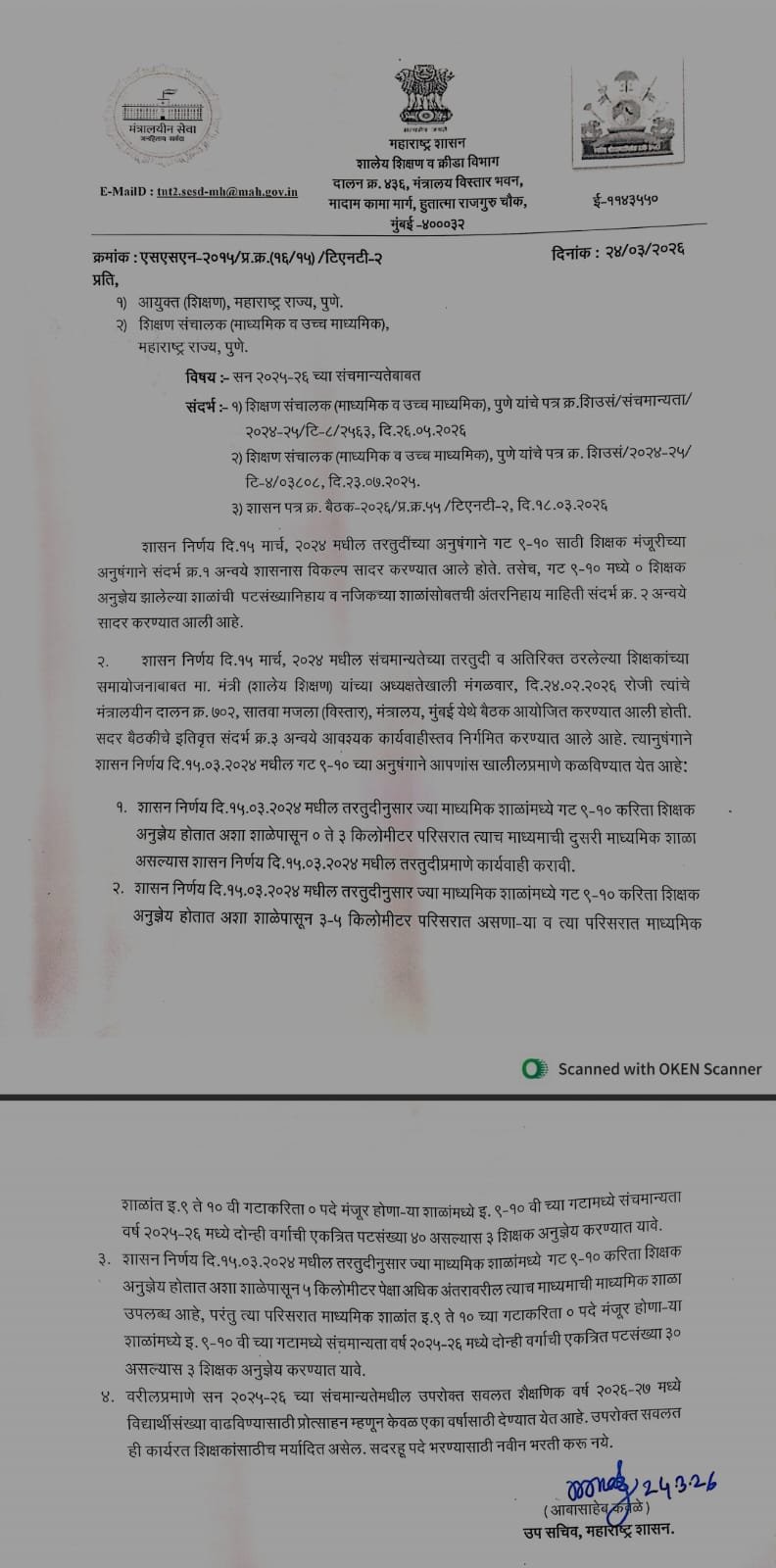 सन २०२४-२५ च्या संचमान्यतेनुसार अतिरिक्त शिक्षक समायोजनाबाबत.