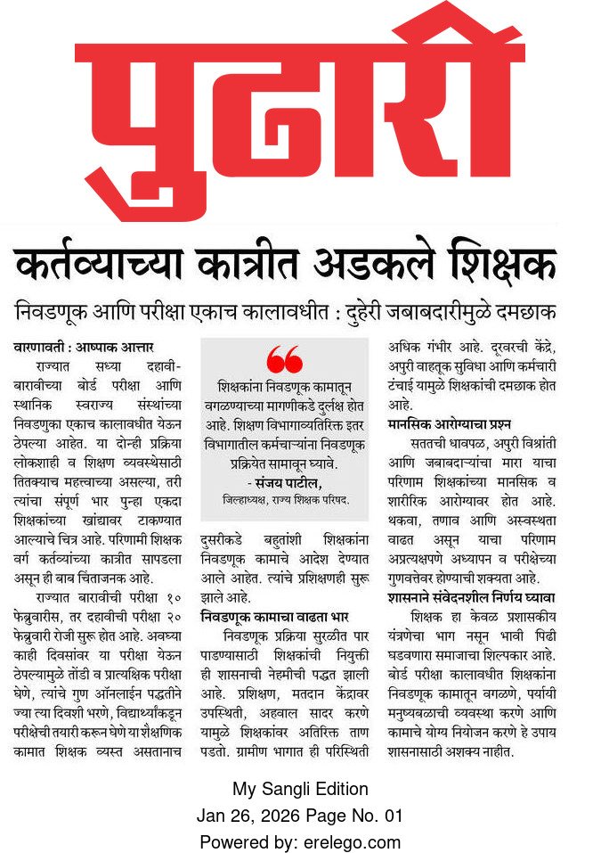 शिक्षक हा केवळ प्रशासकीय यंत्रणेचा भाग नसून भावी पिढी घडवणारा समाजाचा शिल्पकार आहे. बोर्ड परीक्षा कालावधीत शिक्षकांना निवडणूक कामातून वगळणे, पर्यायी मनुष्यबळाची व्यवस्था करणे आणि कामाचे योग्य नियोजन करणे हे उपाय शासनासाठी अशक्य नाहीत.