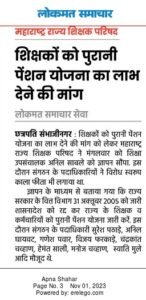 महाराष्ट्र राज्य जुनी पेन्शन कोअर कमिटी शिक्षण संघर्ष संघटना
