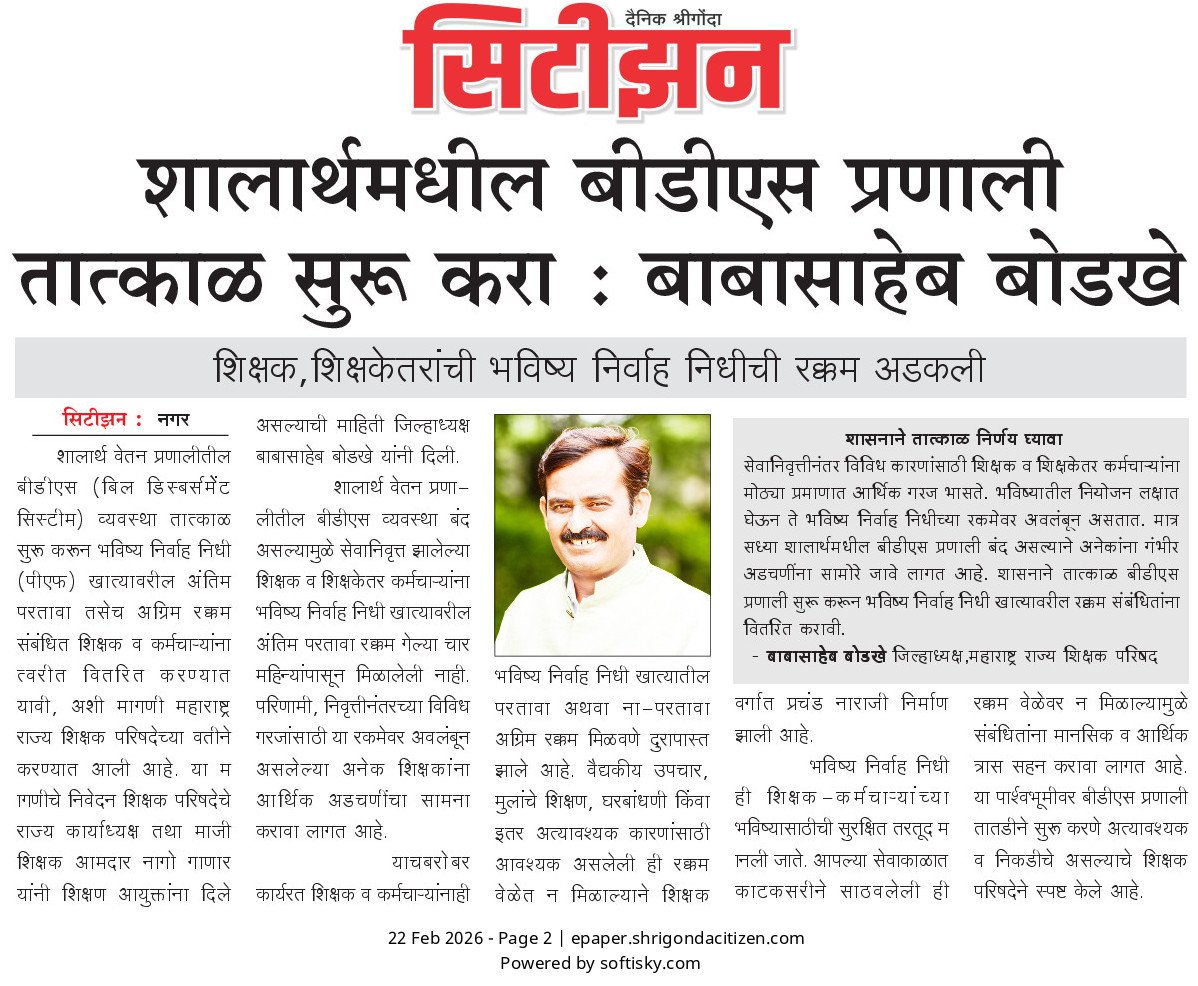 सेवानिवृत्तीनंतर विविध कारणांसाठी शिक्षक व शिक्षकेतर कर्मचाऱ्यांना मोठ्या प्रमाणात आर्थिक गरज भासते. भविष्यातील नियोजन लक्षात घेऊन ते भविष्य निर्वाह निधीच्या रकमेवर अवलंबून असतात. मात्र सध्या शालार्थमधील बीडीएस प्रणाली बंद असल्याने अनेकांना गंभीर अडचणींना सामोरे जावे लागत आहे. शासनाने तात्काळ बीडीएस प्रणाली सुरू करून भविष्य निर्वाह निधी खात्यावरील रक्कम संबंधितांना वितरित करावी.