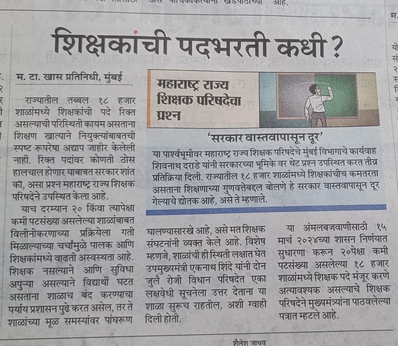महाराष्ट्र राज्य शिक्षक परिषदेचा प्रश्न
