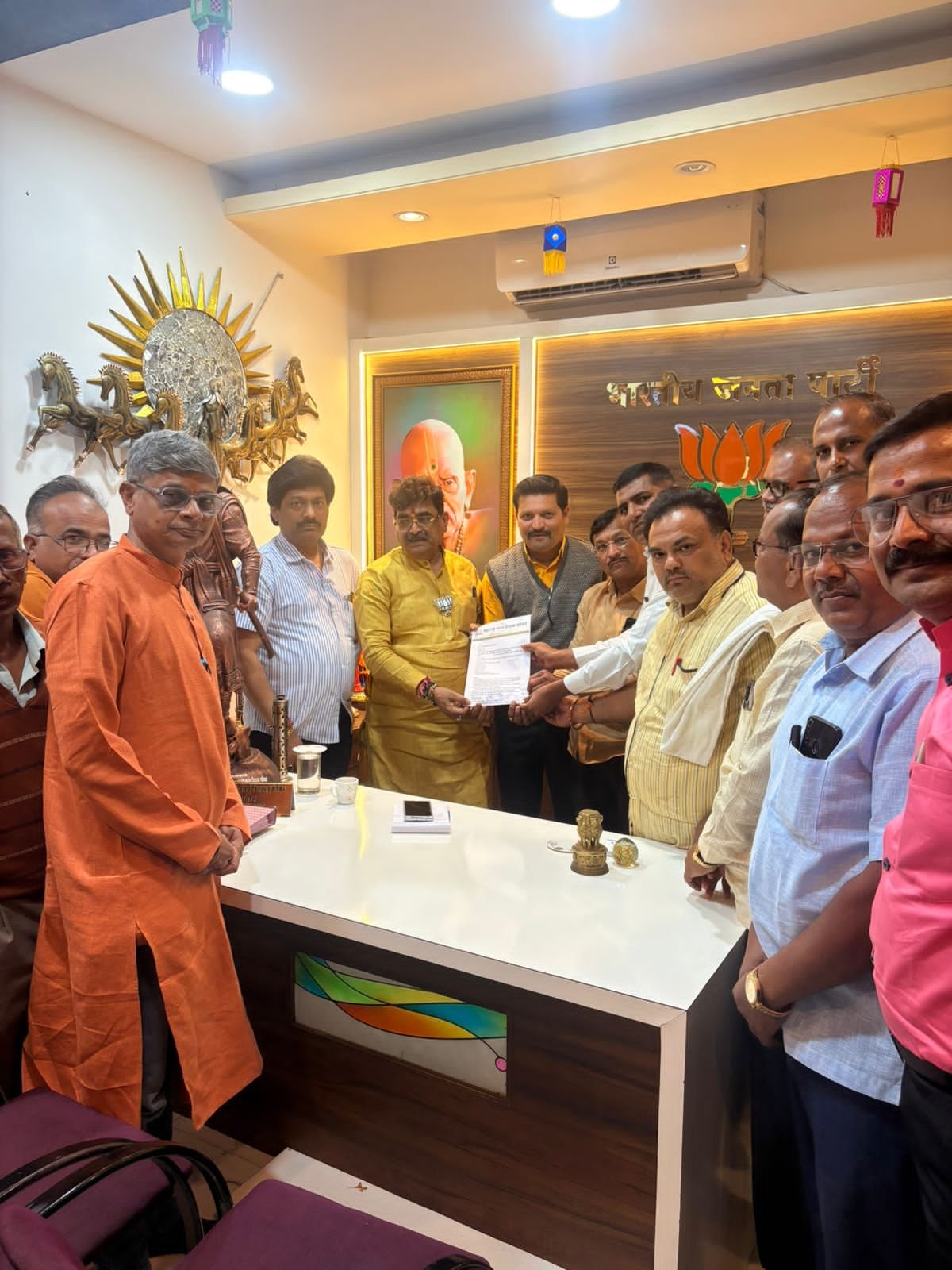 1 नोव्हेंबर 2005 पूर्वी नियुक्त शिक्षक व शिक्षकेतर कर्मचारी यांना 1982 ची जुनी पेन्शन लागू करावी यासाठी महाराष्ट्र राज्य शिक्षक परिषदेच्या वतीने विधान परिषदेचे आमदार मा .संजय केनेकर यांना निवेदन देऊन विधान परिषदेत नंतर उपस्थित करण्यासाठी व त्यांच्या प्रश्न सोडविण्यासाठी विनंती करण्यात आली. याप्रसंगी भाजप प्रदेश सरचिटणीस किरणजी पाटील महाराष्ट्र राज्य शिक्षक परिषदेचे राज्य कार्याध्यक्ष गणेश पवार , विभाग कार्यवाहक सुरेश पठाडे ,विभाग संघटन मंत्री अभिजीत धनोरकर ,विभाग कार्याध्यक्ष अनिल घायवट ,जिल्हाध्यक्ष दिलीप कुंदे , जिल्हाध्यक्ष काकासाहेब जाधव, कार्यवाह विजय फरकाडे ,मनोज वाघ, कोषाध्यक्ष अशोक पवार.